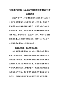 卫健委完成火灾隐患全面排查与整治,强化安全意识,提升防控能力,确保医疗卫生机构安全稳定,成效如何?公文包网友为您分享整理的“卫健委2025年上半年火灾隐患排查整治工作总结范文”范文资料,以供您参考学习之用,希望喜欢。