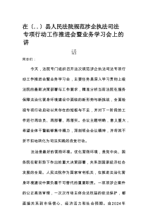 会议强调加强涉企案件处理,提升司法服务水平,保障企业合法权益,促进经济健康发展。以下由网友整理分享的县人民法院规范涉企执法司法专项行动工作推进会暨业务学习会上的讲话相关文档,供您学习参考,喜欢就分享吧!