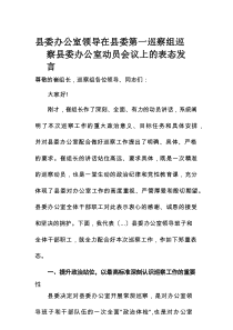 县委办公室将全力配合巡察工作,确保巡察任务顺利完成,积极整改问题,提升工作效率,共同推进廉政建设,如何更好地落实?下面是小编为您整理的县委办公室领导在县委第一巡察组巡察县委办公室动员会议上的表态发言范例,仅供参考,希望对您有所帮助。