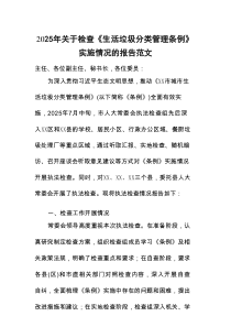 生活垃圾分类管理取得显著成效,居民参与度高,分类准确率大幅提升,环境质量明显改善。公文包网友为您分享整理的“2025年关于检查《生活垃圾分类管理条例》实施情况的报告范文”范文资料,以供您参考学习之用,希望喜欢。