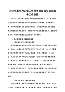 电力农电工作部紧密结合党建与业务深度融合目标,强化组织建设,提升服务水平,促进农村电网改造升级,增强供电可靠性,推动乡村振兴战略实施。以下由网友整理分享的“2025年度电力农电工作部年度党建与业务融合工作总结”相关材料,便您学习参考,喜欢就分享给朋友吧!