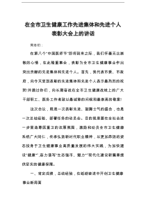 会议强调卫生健康工作的重要性,表彰了先进集体和个人,鼓励大家继续努力,推动健康事业发展。公文包网友为您分享整理的“在全市卫生健康工作先进集体和先进个人表彰大会上的讲话”范文资料,以供您参考学习之用,希望喜欢。