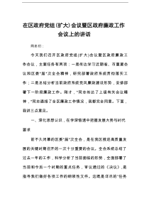 会议强调加强党风廉政建设,推进政府工作透明高效,确保政策落实到位,提升民众满意度,如何更好地实现这些目标?以下是阿拉网友分享的“在区政府党组(扩大)会议暨区政府廉政工作会议上的讲话”,供您学习参考,希望有所用途!