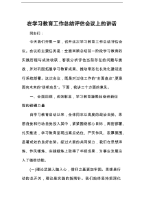 会议强调总结经验,发现问题,提出改进措施,促进教育工作持续健康发展。下面是网友整理编辑的在学习教育工作总结评估会议上的讲话相关范文,供大家参考学习,喜欢就下载支持!