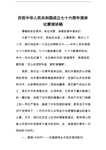 庆祝中华人民共和国成立,回顾辉煌历程,展望美好未来,共同奋斗实现中华民族伟大复兴。下面是网友整理分享的庆祝中华人民共和国成立七十六周年演讲比赛演讲稿相关资料,供大家学习参考,喜欢就分享吧!