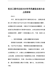 机关工委书记在作风建设总结大会上强调,持续深化作风建设,提升服务效能,强化责任担当,确保各项工作落实到位。以下由公文包网友为您分享的范文资料,供您参考学习之用。