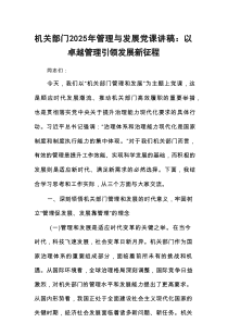 新时代机关部门如何以卓越管理推动高质量发展,实现新跨越,引领新征程?下面是网友整理编辑的机关部门2025年管理与发展党课讲稿:以卓越管理引领发展新征程相关范文,供大家参考学习,喜欢就下载支持!