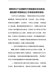 烟草局通过强化网络意识形态阵地建设,提升思想政治工作效果,如何进一步增强其影响力和覆盖面?下面是小编为您整理的烟草局关于加强新时代网络意识形态阵地建设提升思想政治工作质效的研究报告范例,仅供参考,希望对您有所帮助。