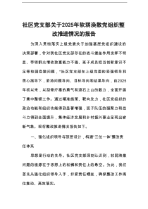 社区党支部针对软弱涣散问题,实施多项整改措施,加强组织建设,提升党员素质,成效显著!以下由网友整理分享的“社区党支部关于2025年软弱涣散党组织整改推进情况的报告”相关材料,便您学习参考,喜欢就分享给朋友吧!